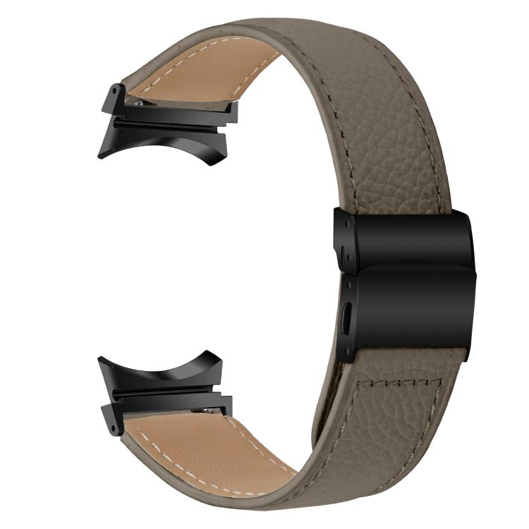 Correa de cuero con hebilla trasera de tortuga negra y textura de lichi para Samsung Galaxy Watch 7 (40/44 mm, gris)