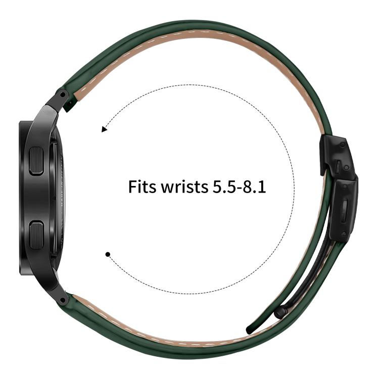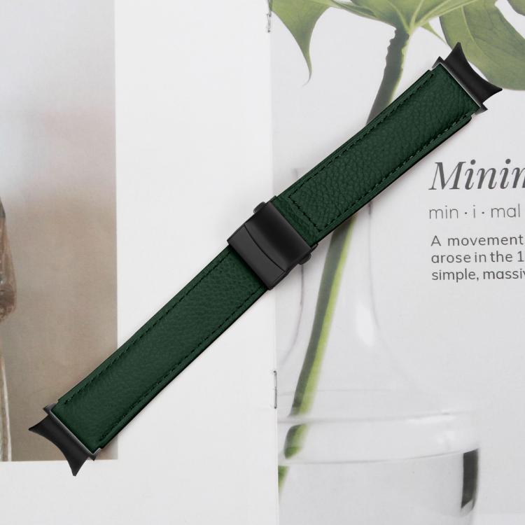 Correa de cuero con hebilla trasera de tortuga negra y textura de lichi para Samsung Galaxy Watch 7 (40/44 mm, verde)
