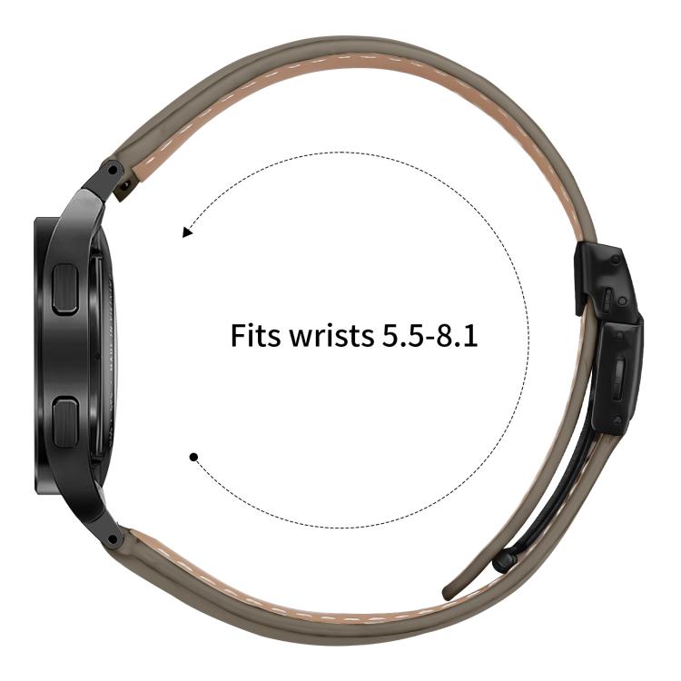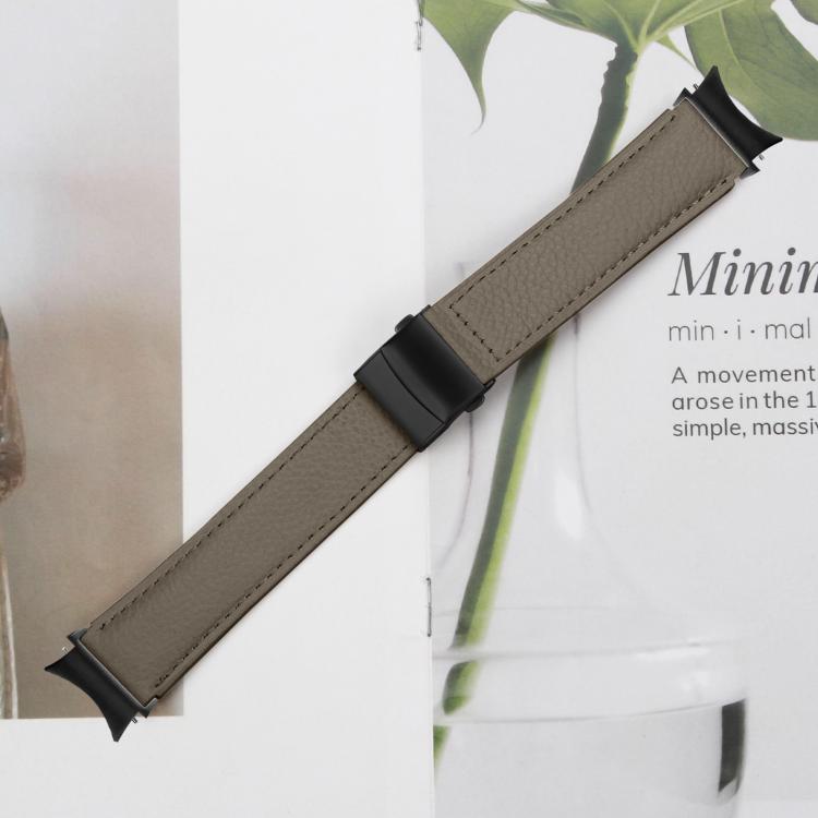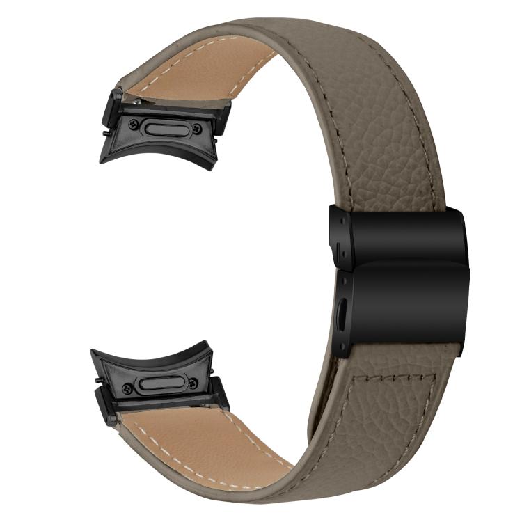 Correa de cuero con hebilla trasera de tortuga negra y textura lichi de liberación rápida para Samsung Galaxy Watch 7 (40/44 mm, gris)