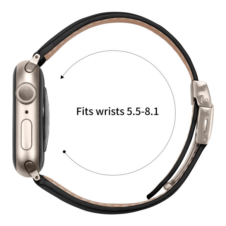 Correa de cuero con hebilla trasera de tortuga y textura de lichi para Apple Watch de 42 mm, 41 mm, 40 mm y 38 mm (negra)