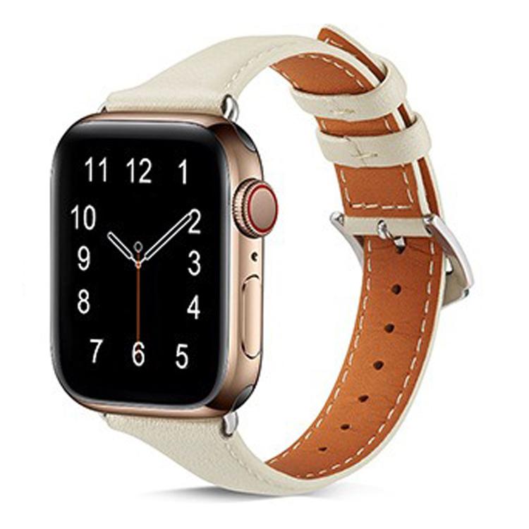 Correa de cuero genuino con hebilla pequeña para Apple Watch de 46 mm, 49 mm, 45 mm y 44 mm (blanco marfil)