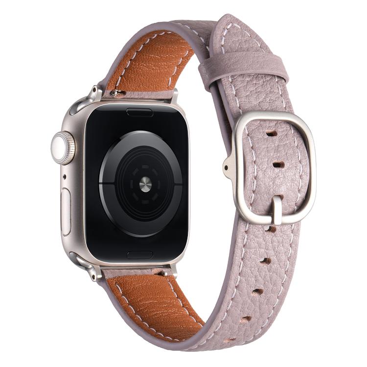 Correa de cuero genuino con textura de lichi y hebilla cuadrada para Apple Watch de 46 mm, 49 mm, 45 mm y 44 mm (morado brumoso)