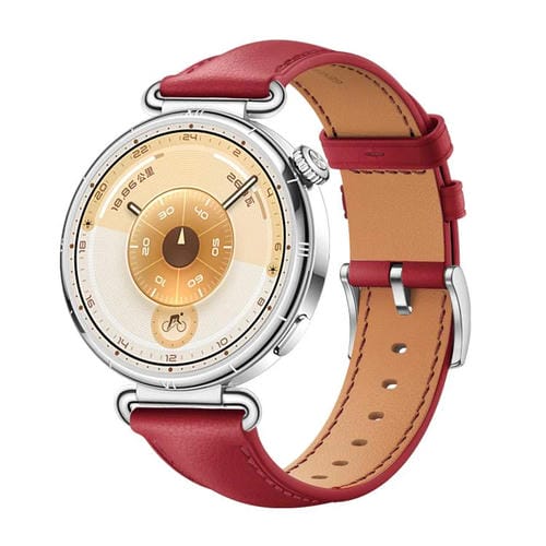 Correa de cuero suave con hebilla plateada para Huawei Watch GT 6 de 41 mm (rojo oscuro)