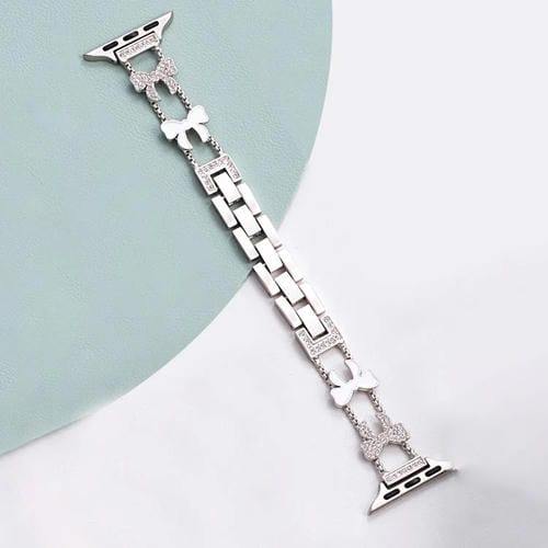 Correa de metal con diamantes y cadena de lazo para Apple Watch de 38, 40, 41 y S11 de 42 mm (luz de estrellas)