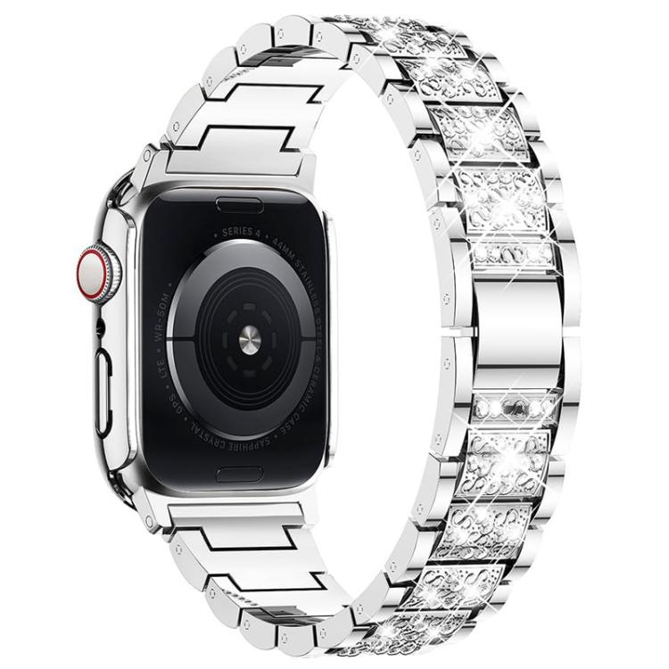 Correa de metal con diamantes y estuche para Apple Watch Series 10 de 46 mm xDfind (plateada)