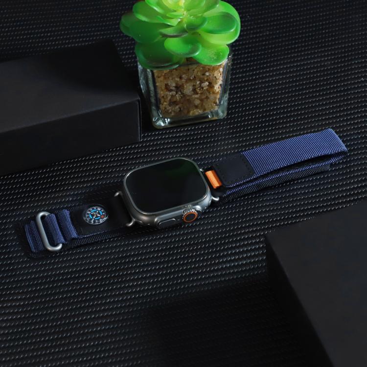 Correa de nailon con brújula para Apple Watch de 42 mm, 41 mm, 40 mm y 38 mm (negro y azul)
