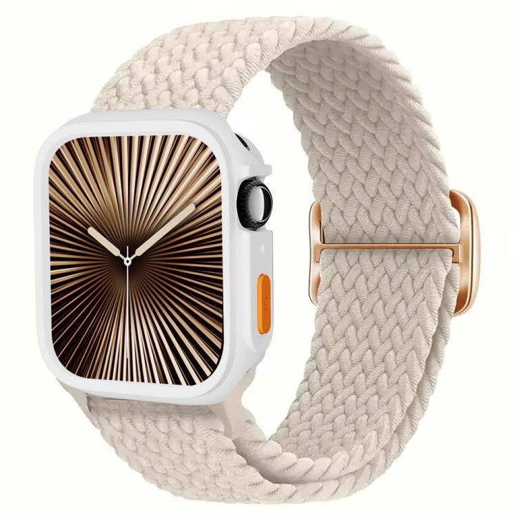 Correa de nailon con hebilla de escalera para Apple Watch Series 10/11 de 46 mm con funda de TPU (Starlight)