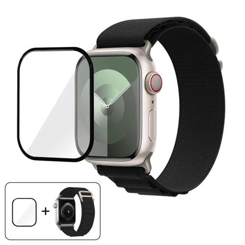 Correa de nailon con hebilla y película curva 3D para Apple Watch Series 41 mm (negra)