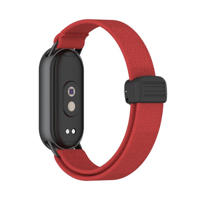 Correa de nailon elástica con hebilla magnética de plástico y cabeza de metal para Xiaomi Smart Band 10/9/8 (roja)