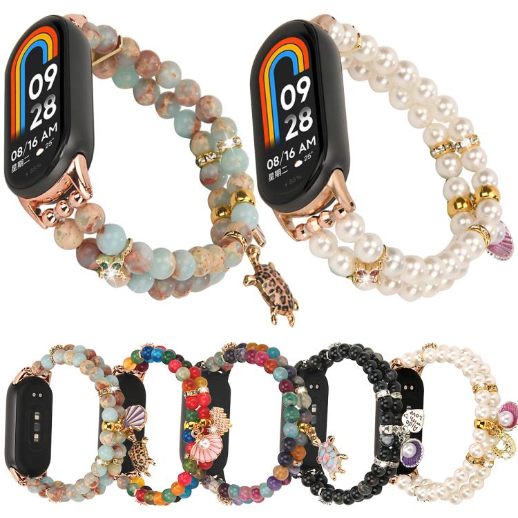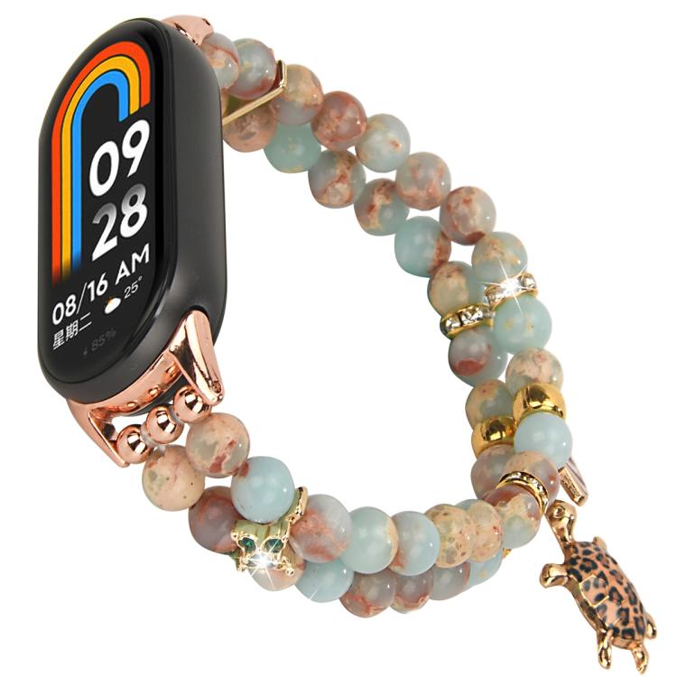 Correa de reloj con cadena de cuentas de doble fila para Xiaomi Smart Band 10/9/8 (azul océano)