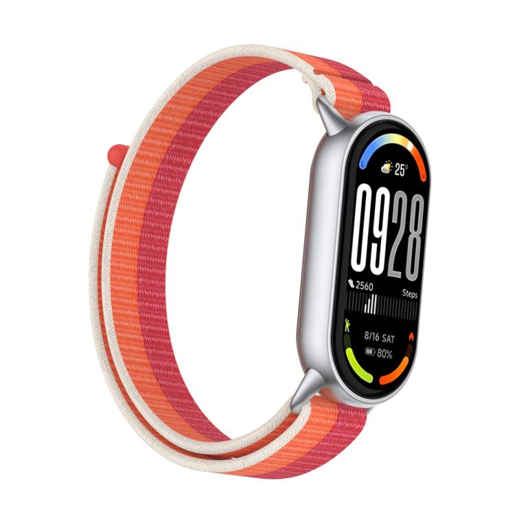 Correa de reloj con cierre de velcro de nailon integrado para Xiaomi Smart Band 10/9/8 (Peonía)
