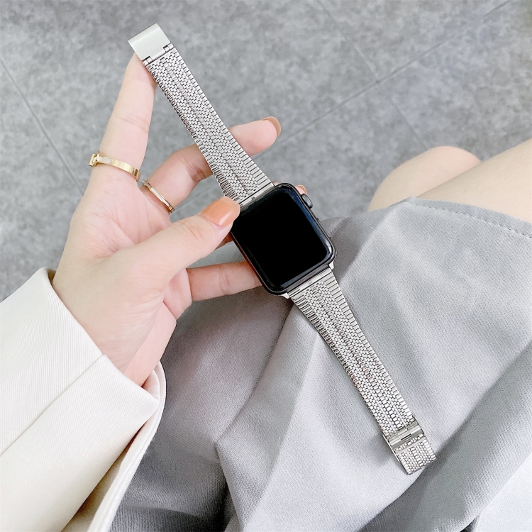 Correa de Reloj Acero Doble Línea para Apple Watch Series 7 45mm / 6 y SE y 5 y 4 44mm / 3 y 2 y 1 42mm (Plata)