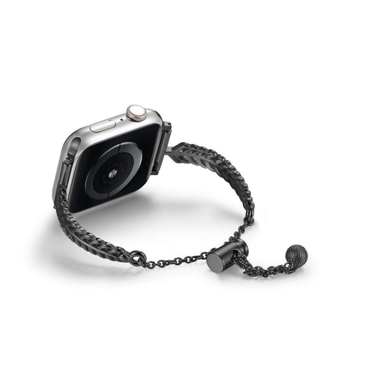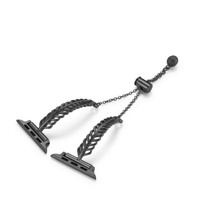 Correa de reloj de aleación de zinc y cobre con plumas de metal para Apple Watch de 46 mm, 49 mm, 45 mm y 44 mm (negra)