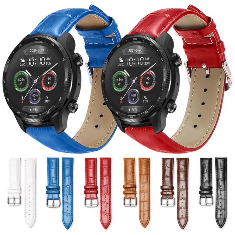 Correa de reloj de cuero con hebilla de pasador y textura de bambú de 20 mm para Ticwatch GTH/E3/E/2 xDfind (blanca)