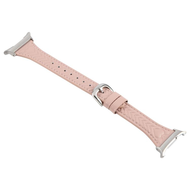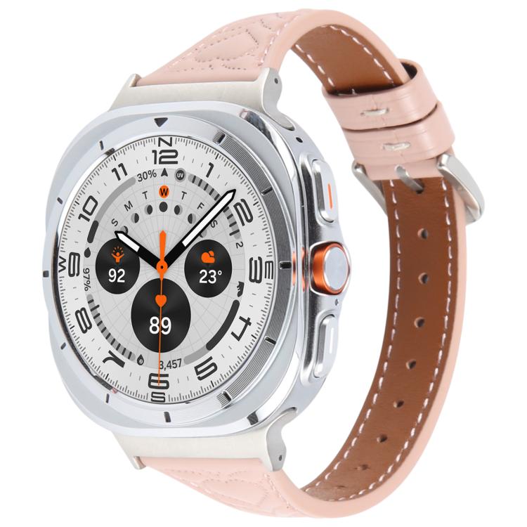 Correa de reloj de cuero con relieve en forma de corazón y conector de metal para Samsung Galaxy Watch Ultra de 47 mm (rosa)