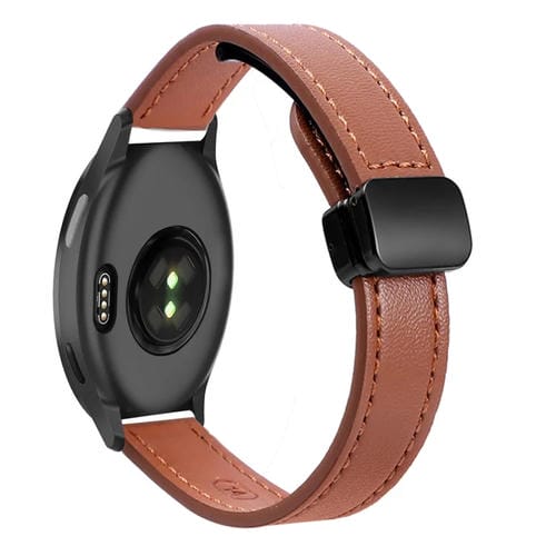 Correa de Reloj Cuero Microfibra 20mm Hebilla Magnética para Garmin Active 5 (Marrón Moca)