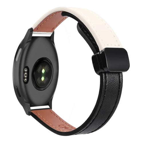 Correa de Reloj Cuero Microfibra 20mm con Hebilla Magnética para Garmin Active 5 (Negro y Albaricoque)