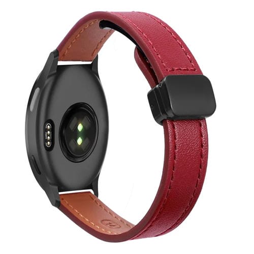 Correa de Reloj Cuero Microfibra 20mm con Hebilla Magnética para Garmin Active 5 (Rojo Vino)
