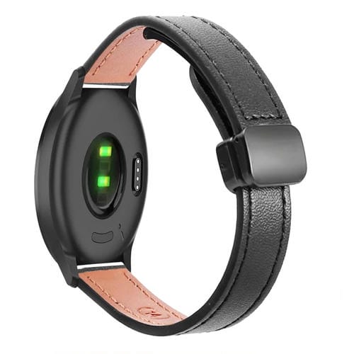 Correa de Reloj de cuero microfibra 20mm con hebilla magnética para Garmin Forerunner 158 (Negra)
