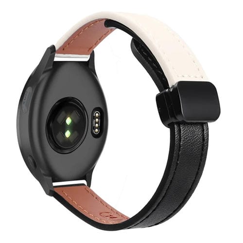 Correa de Reloj de Cuero Microfibra 20mm con Hebilla Magnética para Garmin Forerunner 165 Music (Negro y Albaricoque)