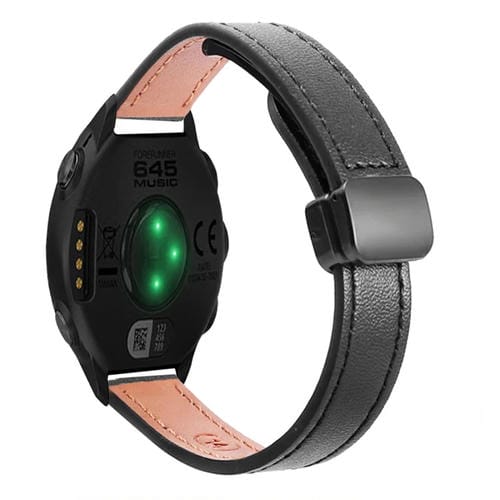 Correa de Reloj Cuero Microfibra 20mm con Hebilla Magnética para Garmin Forerunner 645 Music (Negra)