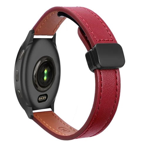 Correa de Reloj Cuero Microfibra 20mm con Hebilla Magnética para Garmin Venu 2 Plus (Rojo Vino)