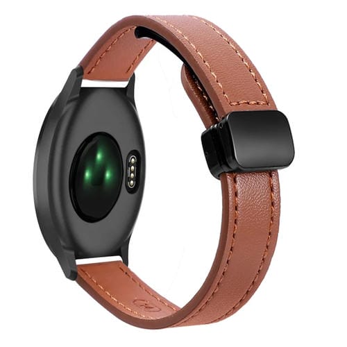 Correa de Reloj Cuero Microfibra 20mm con Hebilla Magnética para Garmin Vivomove Hr Sport (Marrón Moca)