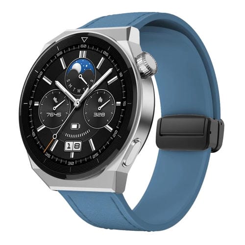 Correa de Reloj de Cuero de Silicona 22mm con Hebilla Negra Magnética (Azul)