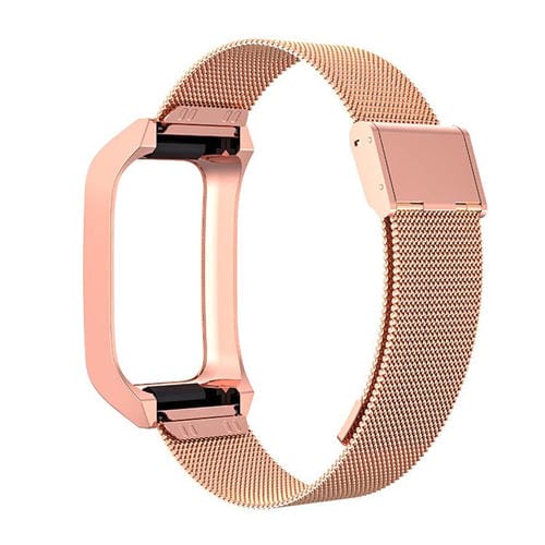Correa de reloj de metal con hebilla milanesa integrada y marco de acero inoxidable para Xiaomi Mi Band 7 Pro (oro rosa)
