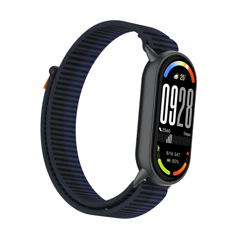 Correa de reloj de nailon con cierre de velcro para Xiaomi Smart Band 10/9/8 (azul oscuro)