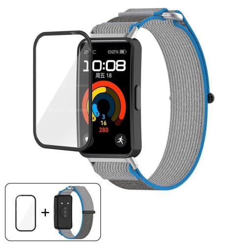 Correa de reloj de nailon con cierre de velcro y película curva 3D para Huawei Band 10/10 NFC Wild Path (azul grisáceo)