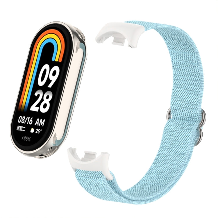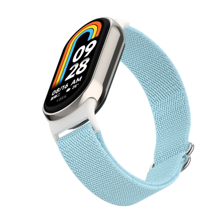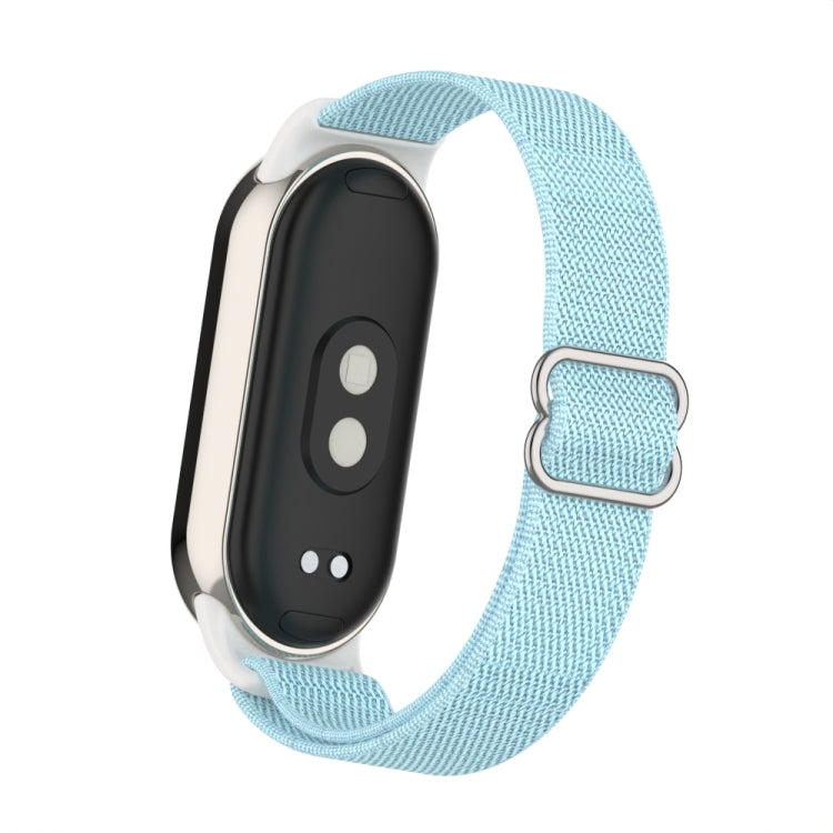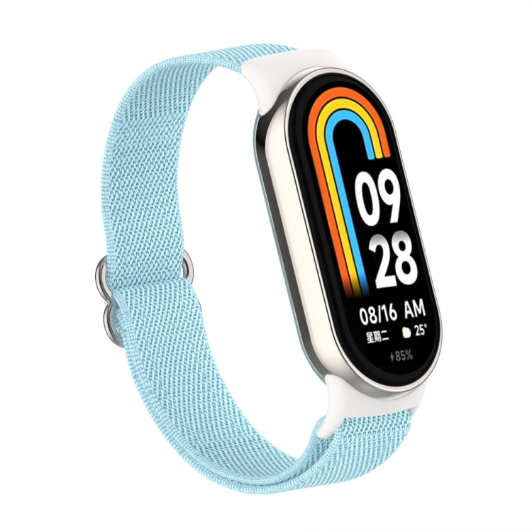 Correa de reloj de nailon elástica lisa con tapón de plástico para Xiaomi Smart Band 9/8 (azul claro)