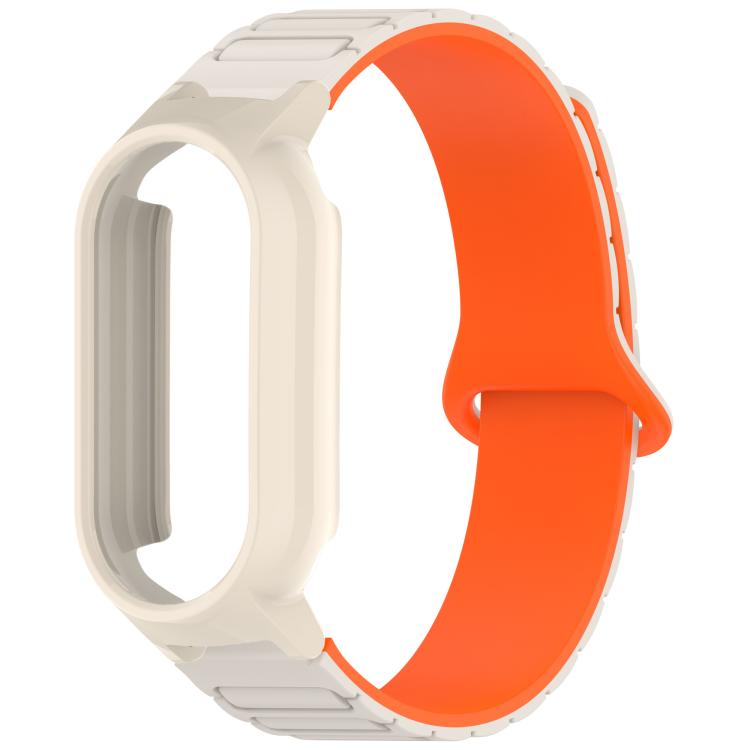 Correa de reloj de silicona magnética con forma de I para Xiaomi Mi Band 8/8 NFC PC Watch Frame (naranja Starlight + blanco)
