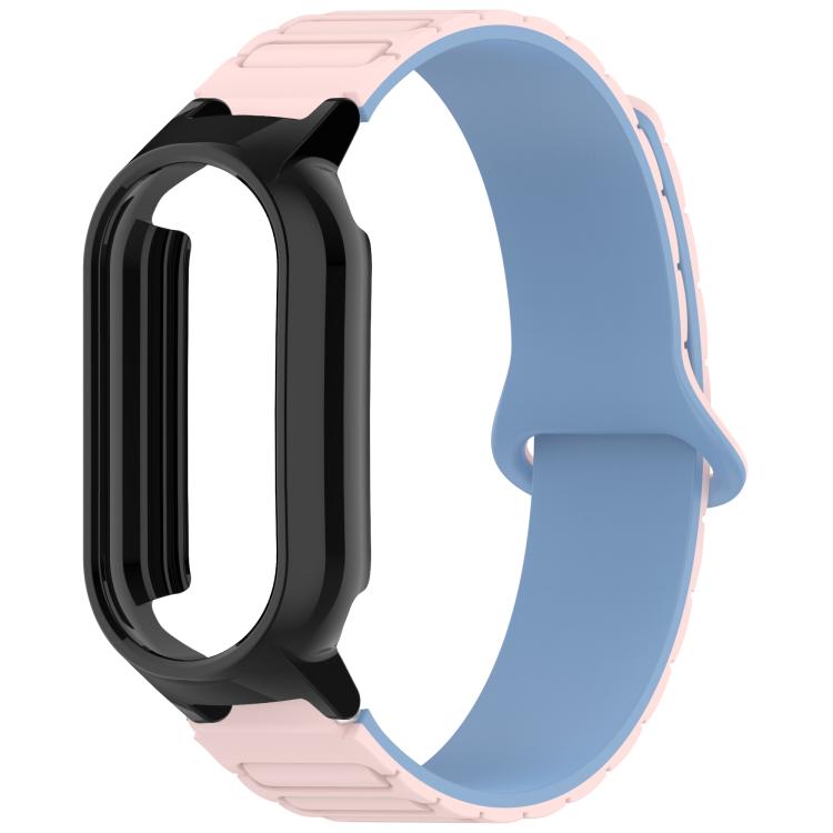 Correa de reloj de silicona magnética con forma de I para Xiaomi Mi Band 8/8 NFC PC Watch Frame (rosa, azul y negro)