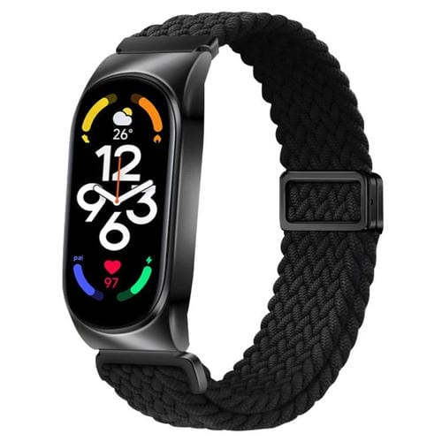 Correa de reloj elástica de nailon trenzado con hebilla magnética y marco de metal para Xiaomi Mi Band 7 (negra)