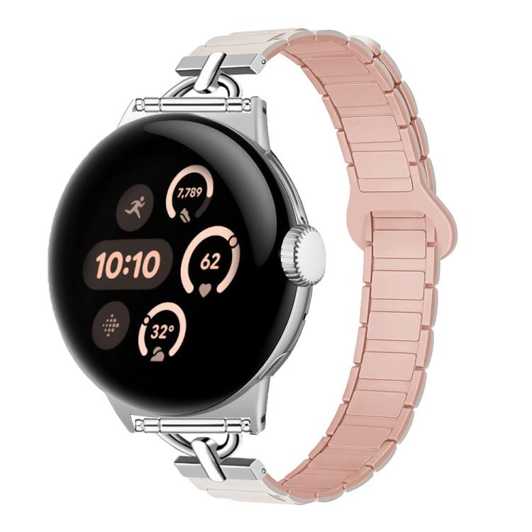 Correa de reloj magnética de silicona con tres cuentas en forma de D de 41 mm para Google Pixel Watch 4 / 3 / 2 / 1 (Arena Rosa Estelar)