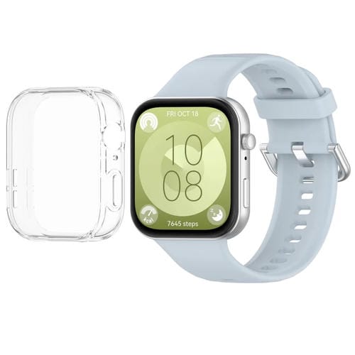 Correa de Silicona Blanda para Reloj Huawei Watch Fit3 + Funda Transparente (Azul Claro)