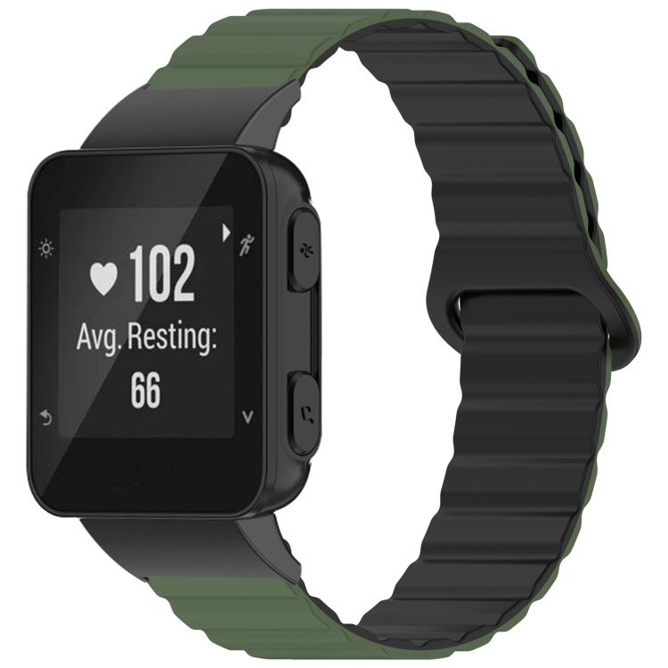 Correa de silicona brillante magnética para Garmin Forerunner 35/30/35J xDfind Loop (verde militar y negro)