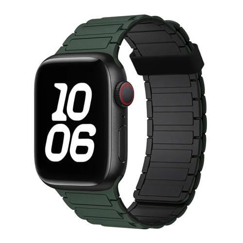 Correa de Silicona con Aro Magnético de Tres Cuentas para Apple Watch Se 2022 de 40mm (Verde Oscuro y Negro)