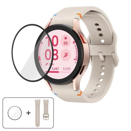 Correa de silicona con costuras lisas y película curva 3D para Samsung Galaxy Watch5 de 44 mm (Starlight)