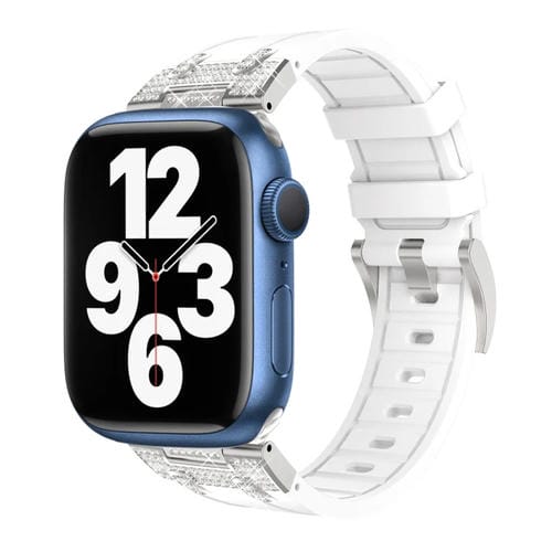 Correa de Silicona Apple Watch Series 7 45mm Diseño Cielo Estrellado y Diamantes (Blanca)