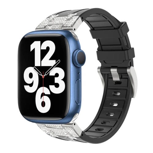 Correa de Silicona Apple Watch Series 7 45mm Diseño Cielo Estrellado Diamantes (Negra)