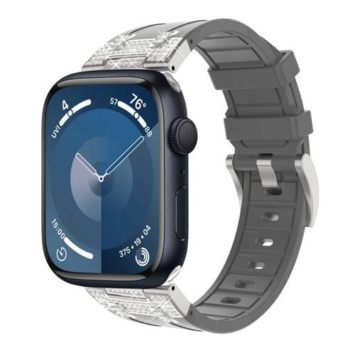 Correa de Silicona Apple Watch Series 9 45mm Diseño Cielo Estrellado Diamantes (Gris)