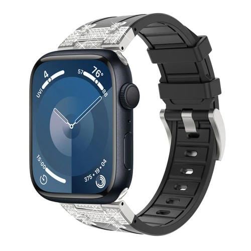 Correa de Silicona Apple Watch Series 9 45mm Diseño Cielo Estrellado Diamantes (Negra)