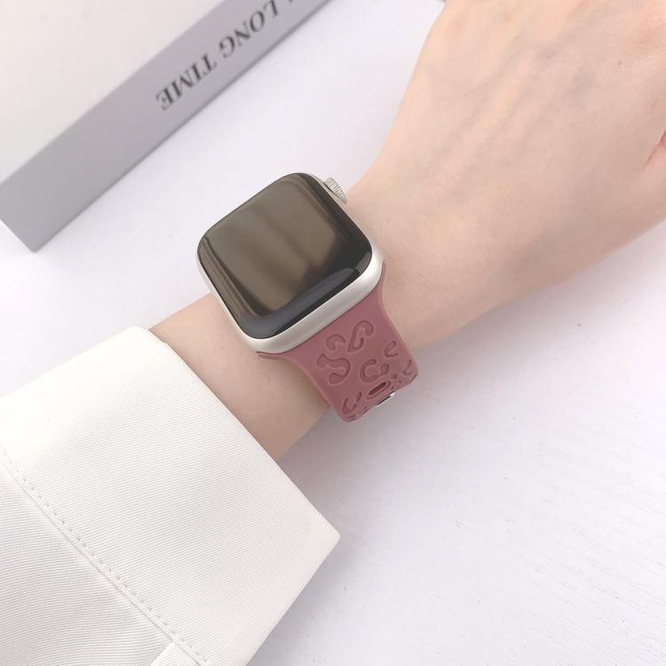 Correa de silicona con hebilla cóncava de leopardo para Apple Watch de 46 mm, 49 mm, 45 mm y 44 mm (morado ahumado)