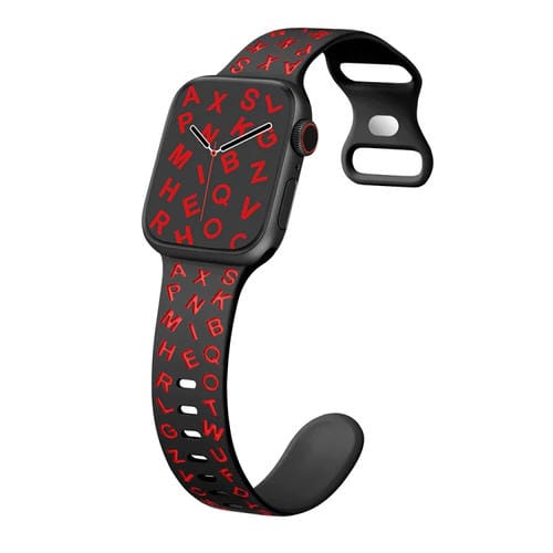 Correa de Silicona Apple Watch 42mm con Hebilla de Mariposa y Letras (Negra y Roja)