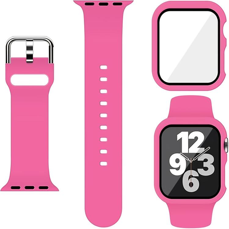 Correa de silicona con hebilla de pasador para Apple Watch Series 44 mm con carcasa de PC integrada (rosa y rojo)