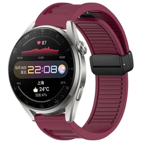Correa de Silicona con Hebilla Magnética Plegable para Huawei Watch 3 Pro 22mm (Rojo Vino)