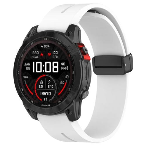 Correa de Silicona para Reloj Garmin Fenix 7S con Hebilla Negra Plegable Magnética (Blanca)