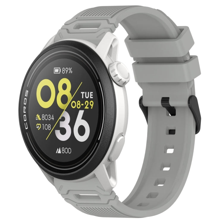 Correa de silicona con hebilla negra y patrón vertical para reloj COROS de 22 mm (gris)